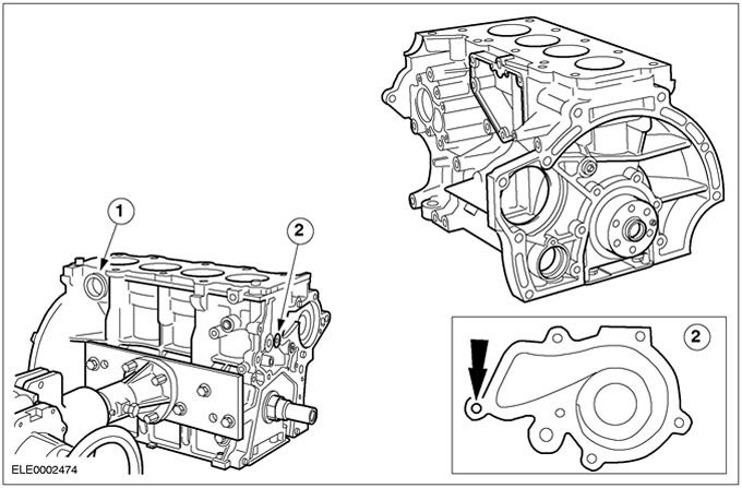- 2. В блоке цилиндров двигателя 1,6L резьбовое отверстие для насоса охлаждающей жидкости может быть отремонтировано посредством установки резьбовой втулки. При выполнении этого не следует превышать значение глубины отверстия 14 мм и длину резьбы 11 мм.