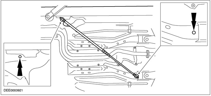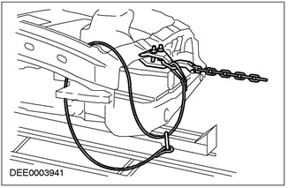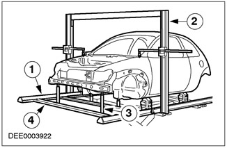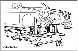ПРИМЕЧАНИЕ: Если на правочный стенд устанавливается поврежденный автомобиль со всеми его агрегатами, остающимися на месте, кузов нуждается в поддержке, чтобы снять часть нагрузки.