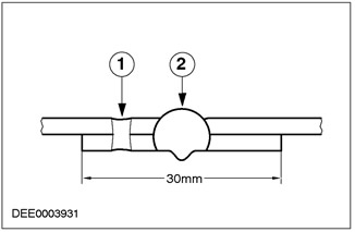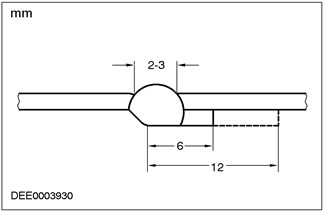 ПРИМЕЧАНИЕ: Увеличенная подача тепла при выполнении сварки по технологии MIG уничтожает слой сварочного грунта/ цинка в намного большей зоне, чем при контактной точечной сварке, в результате чего требуется уделить намного больше внимания при последующем нанесении антикоррозионного покрытия.