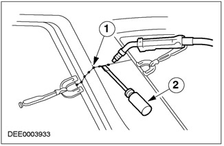 - Перед вырезанием окна с вклеенным стеклом, отпустите и снимите все подсоединяемые элементы, находящиеся в зоне резания, которые подвергаются опасности, например, панели отделки и декоративные полосы, а также все электрические соединения.