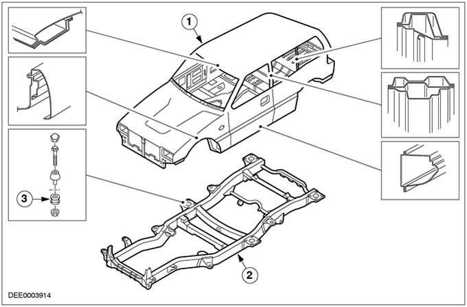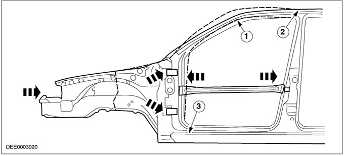 ПРИМЕЧАНИЕ: Если кузов крепится к шасси болтами, все болтовые соединения между кузовом и шасси в процессе правки следует проверять на наличие повреждений.