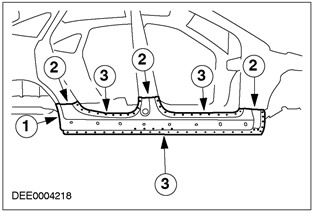 - Обратите внимание на вырезку элемента на замену в зоне стойки «А», стойки «В» и боковой задней панели.