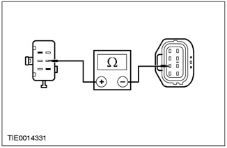1 Измерьте сопротивление между штырем 19 C1000 модуля центрального таймера(CJB), со стороны электропроводки, и штырем 3 C380 модуля управления отопителем, электрической цепи 31S-HB1 (черной/синей), со стороны электропроводки. |
