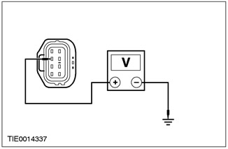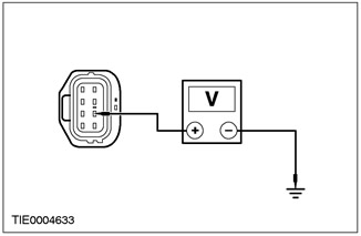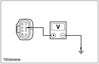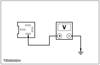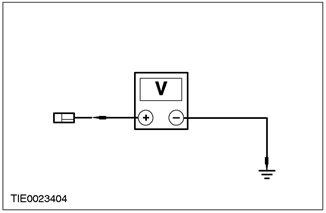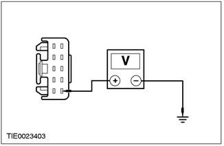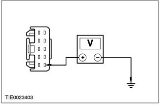 5 Измерьте напряжение между штырем 1 C1003 реле обогрева лобового стекла, электрической цепи 64-HB7 (коричневой/красной), со стороны электропроводки, и «массой». |