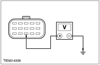 1 Измерьте сопротивление между штырем 12 C380 модуля управления отопителем, электрической цепи 91-FA13 (черной/оранжевой), со стороны электропроводки, и «массой». |