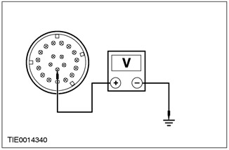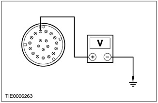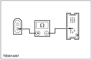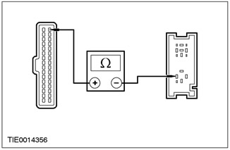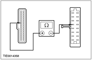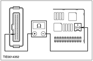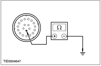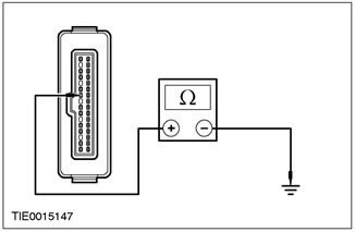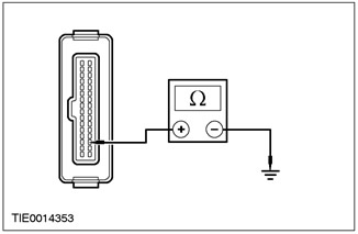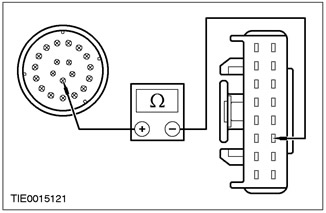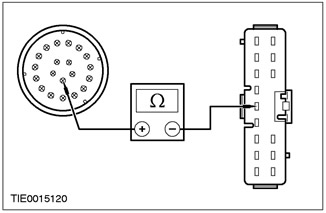 2 Измерьте сопротивление между штырем 19 C1000 модуля центрального таймера (CJB), со стороны электропроводки, и «массой». |