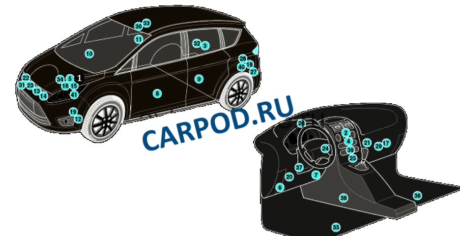 Ford C-MAX второго поколения был представлен на Франкфуртском автосалоне 15 сентября 2009 года. За основу взята внешность концепта iosis MAX, которая являет собой следующий виток «кинетического» дизайна. Автомобиль был первым из модельной линейки компании, построенным на новой глобальной платформе сегмента C, с оптимизированной конструкцией задней подвески «Control Blade» и полуизолированным передним подрамником. В данном материале мы подробно разберём схемы предохранителей Форд С-Макс (Mk2 — кузов C344) второго поколения: 2010, 2011, 2012, 2013, 2014, 2015, 2016, 2017 года выпуска.