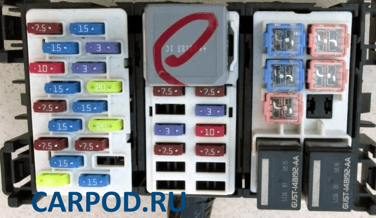 Здесь вы найдете места расположения и фото монтажных блоков. Отдельно отметим предохранители отвечающие за прикуриватель и бензонасос.