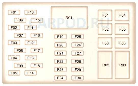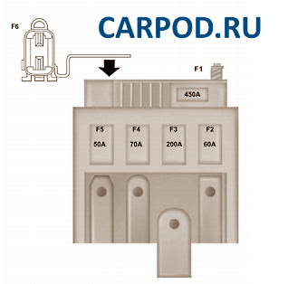 F3 | Блок предохранителей в моторном отсеке. | 200 |