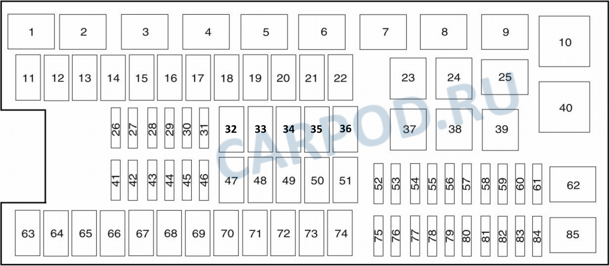 64 | 40A | Питание реле вакуумного насоса (двигатель 3,5 л) |