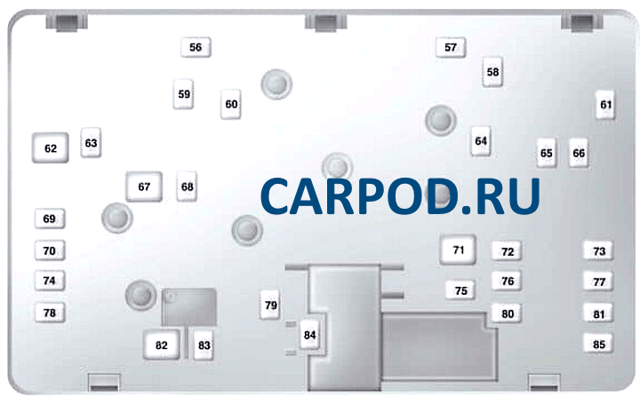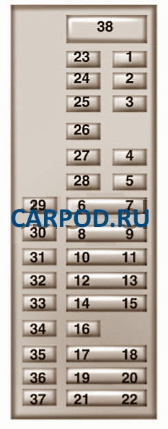 Схема предохранителей в нижнем отделе моторного блока | ||