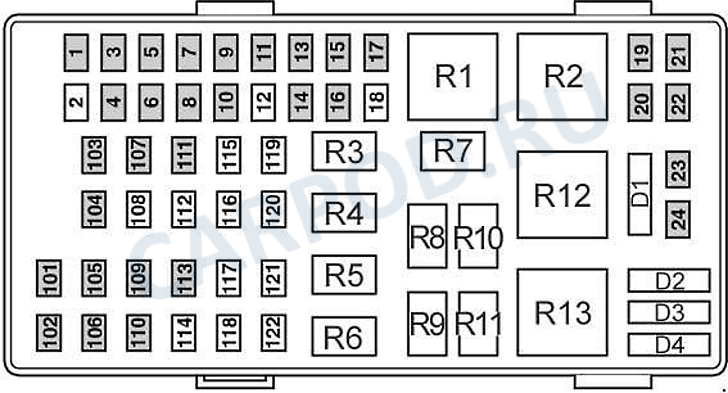 Блок реле №2 (авто с Chassis Cab без парктроника) | |