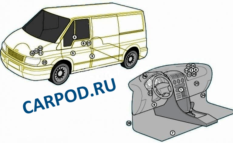 22 | Топливный модуль — предохранитель бензонасоса форд транзит | 20 |