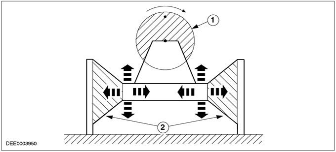 ПРИМЕЧАНИЕ: Резиновые подушки, в которых подвешивается система выпуска, также передают колебания, и при некоторых условиях также могут вызывать проблемы с шумом. По этой причине важно, чтобы система выпуска была установлена без деформаций.