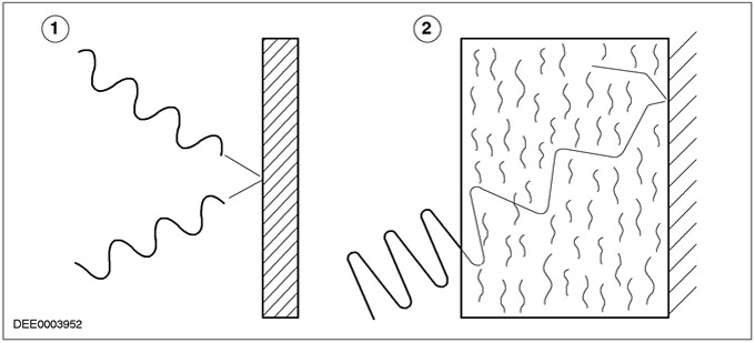 - Если они встречают мягкие поверхности, они поглощаются. Здесь важную роль играет и материал и толщина материала.