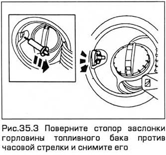3. Вытащите упругий фиксатор замка, затем (снаружи автомобиля) поверните стопор против часовой стрелки и снимите его (см. рис.35.3).